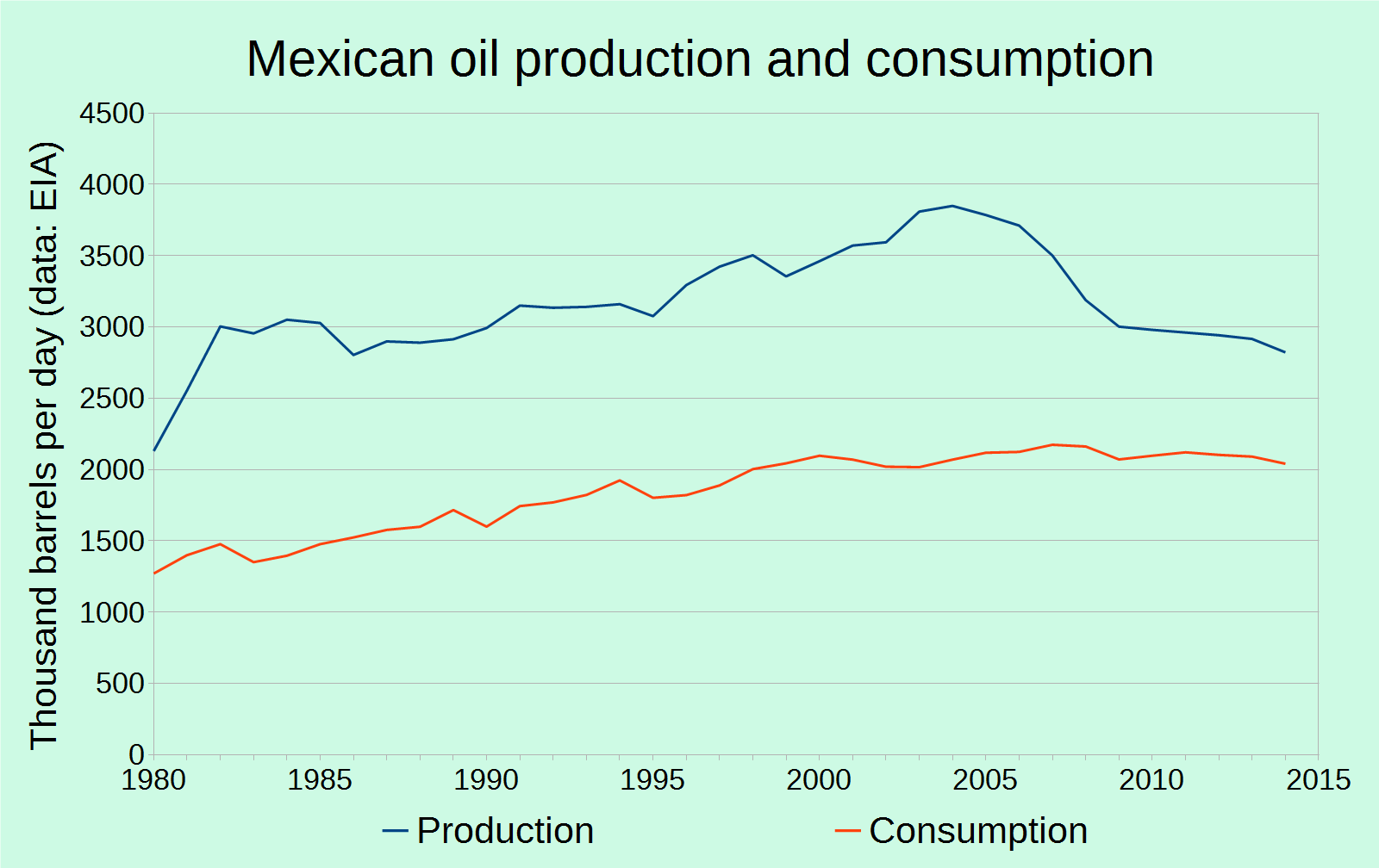In short, and to go along with Ahmed's expectation that Mexico will experience state failure sometime between 2020 and 2035 due to its peak of oil production in 2006,