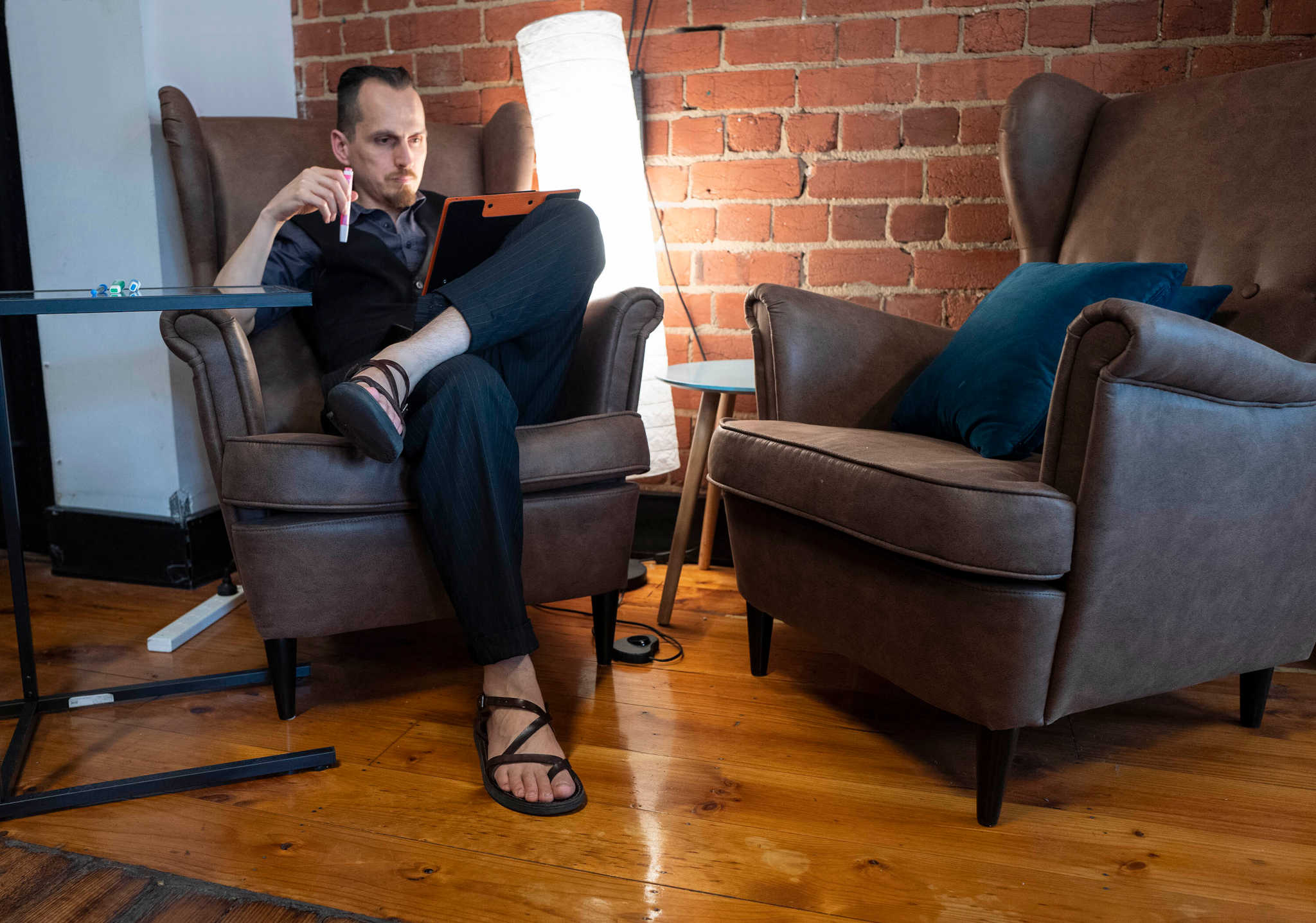 - make changes with the fine-tipped red gel pen, while referencing Reader on my laptop's screen