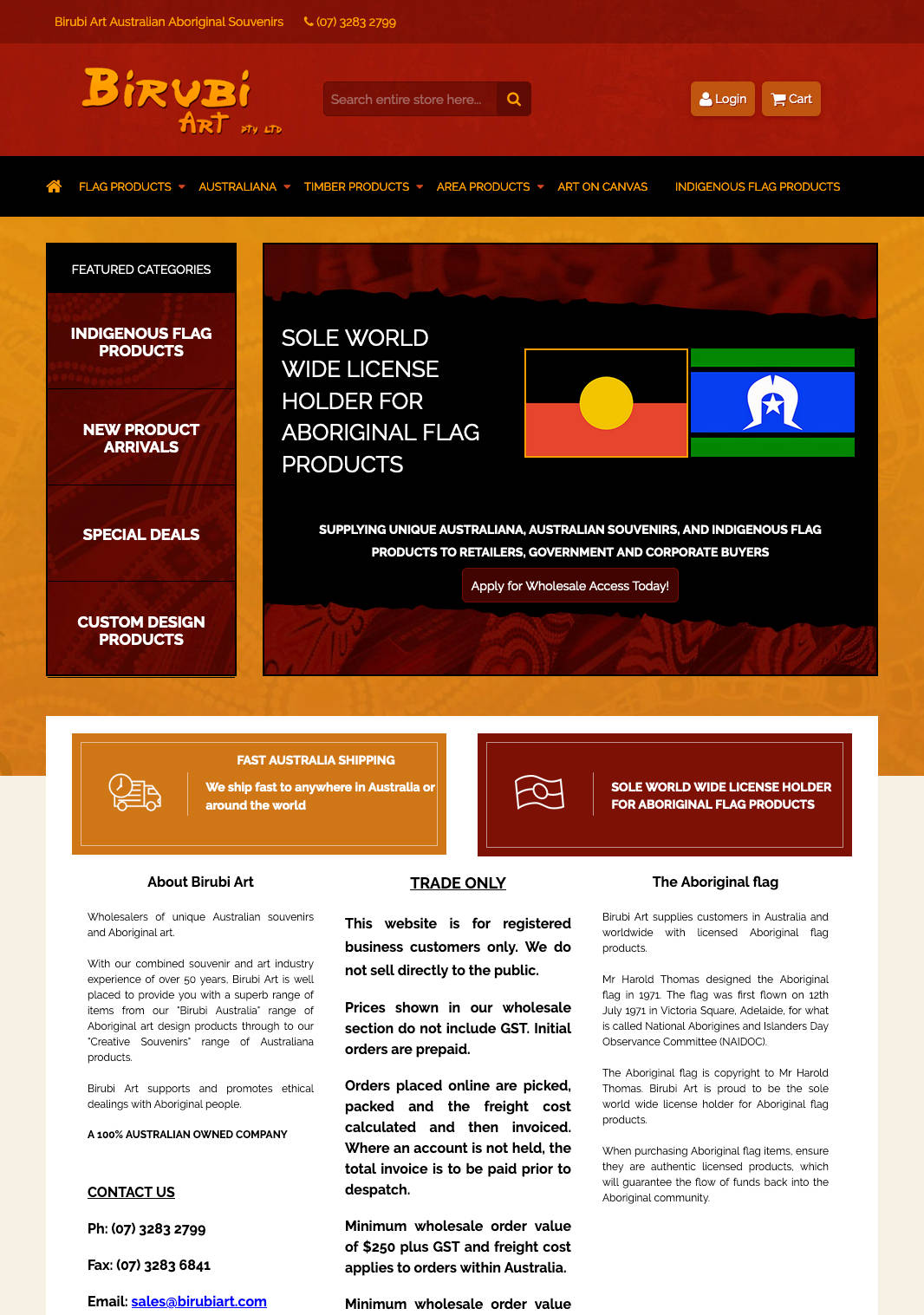 I, Harold Thomas would like to make a sincere statement of how the Aboriginal flag design has been utilised by Birubi Art and Ben Wooster of Brisbane. I have been associated with Ben Wooster for more than 10 years. Ben's company Birubi has an exclusive licence agreement to utilise the Aboriginal flag design for their products that are made available for purchase to the general public.