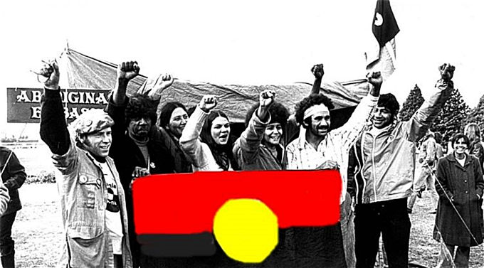 Created as a symbol of protest and community for the land rights movement, the Aboriginal flag was first flown at Victoria Square in Adelaide on 9 July 1971 for National Aborigines Day (now NAIDOC, National Aborigines and Islanders Day Observance Committee). Following its debut the flag was taken by the Aboriginal activist Dr. Gary Foley to Canberra, where in 1972 it was flown above the Aboriginal Tent Embassy across from what was Parliament House at the time. In subsequent years the flag was utilised during civil rights demonstrations (which were heavily repressed by police), the early 1970s being a time when advocating for Indigenous self-determination was at the forefront of the political agenda.