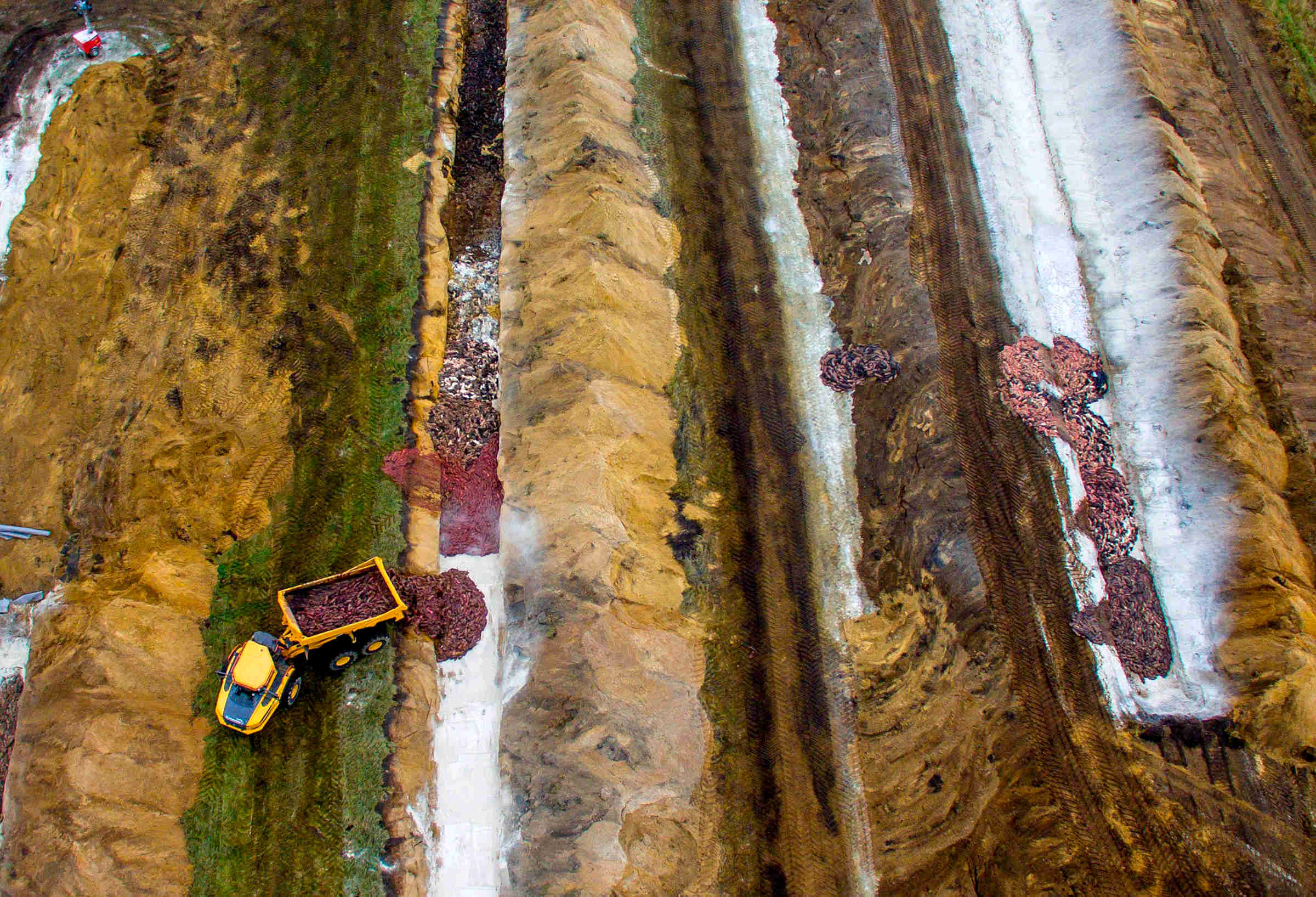 Most notably in Denmark (but also in Italy, the Netherlands, Spain, Sweden, Poland, France, Finland, Canada, Greece, Lithuania and the US) was the observed transmission of COVID-19 from humans to farmed mink. While thousands of mink died in Utah alone (mink experience the same respiratory distress as humans do from COVID-19), a new coronavirus strain emerged in Danish mink which led to fears of decreased efficacy rates of vaccines in humans. Although more than 200 Danes were infected with mink-related variants, fears of a much more dangerous variant have not eventuated. Nonetheless, Denmark, which used to be the world's top exporter of mink furs, culled 17 million mink after outbreaks at more than 200 farms. (Later on several million of those mink had to be dug up and incinerated when gas from their decomposing bodies caused them to rise from their shallow graves and in turn threaten nearby waters.)