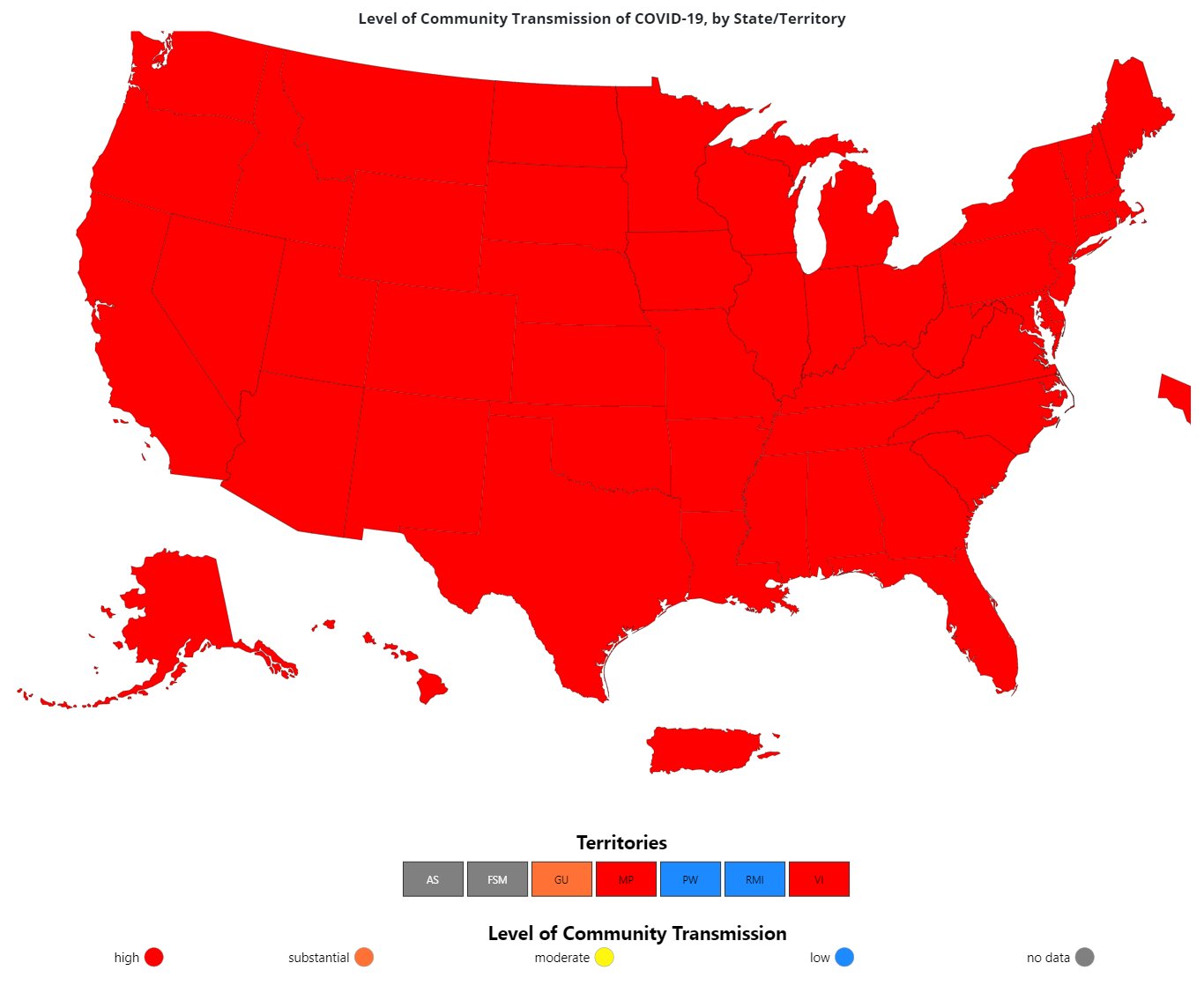 December 30th, the first day every part of the USA was listed as having high levels of COVID-19 transmission (source)