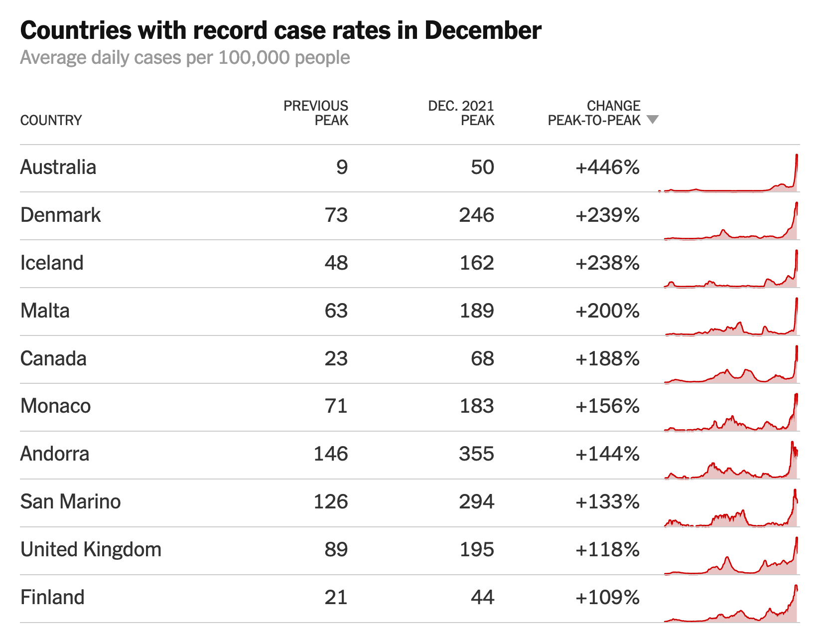 That was no joke. By the end of December, Denmark had the highest recorded incidence of the virus in the world, with 1,612 cases per 100,000 people and deaths on the uptick.